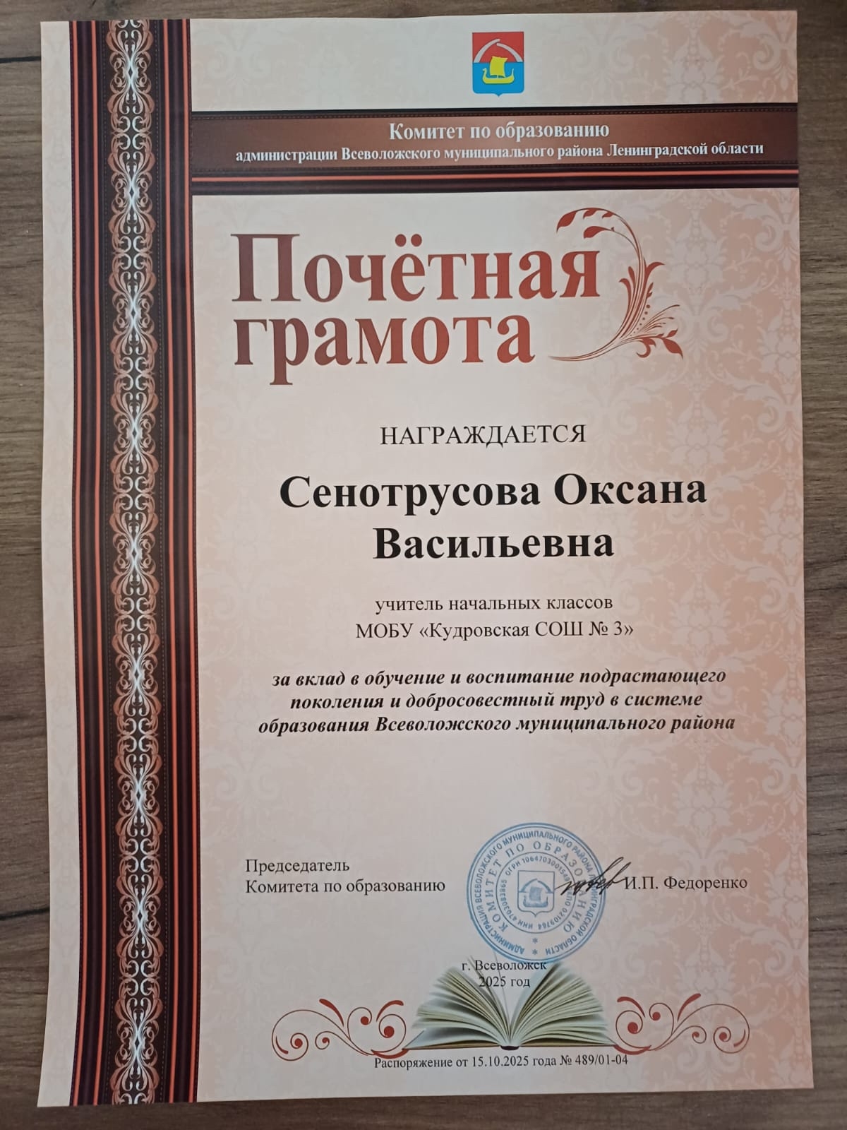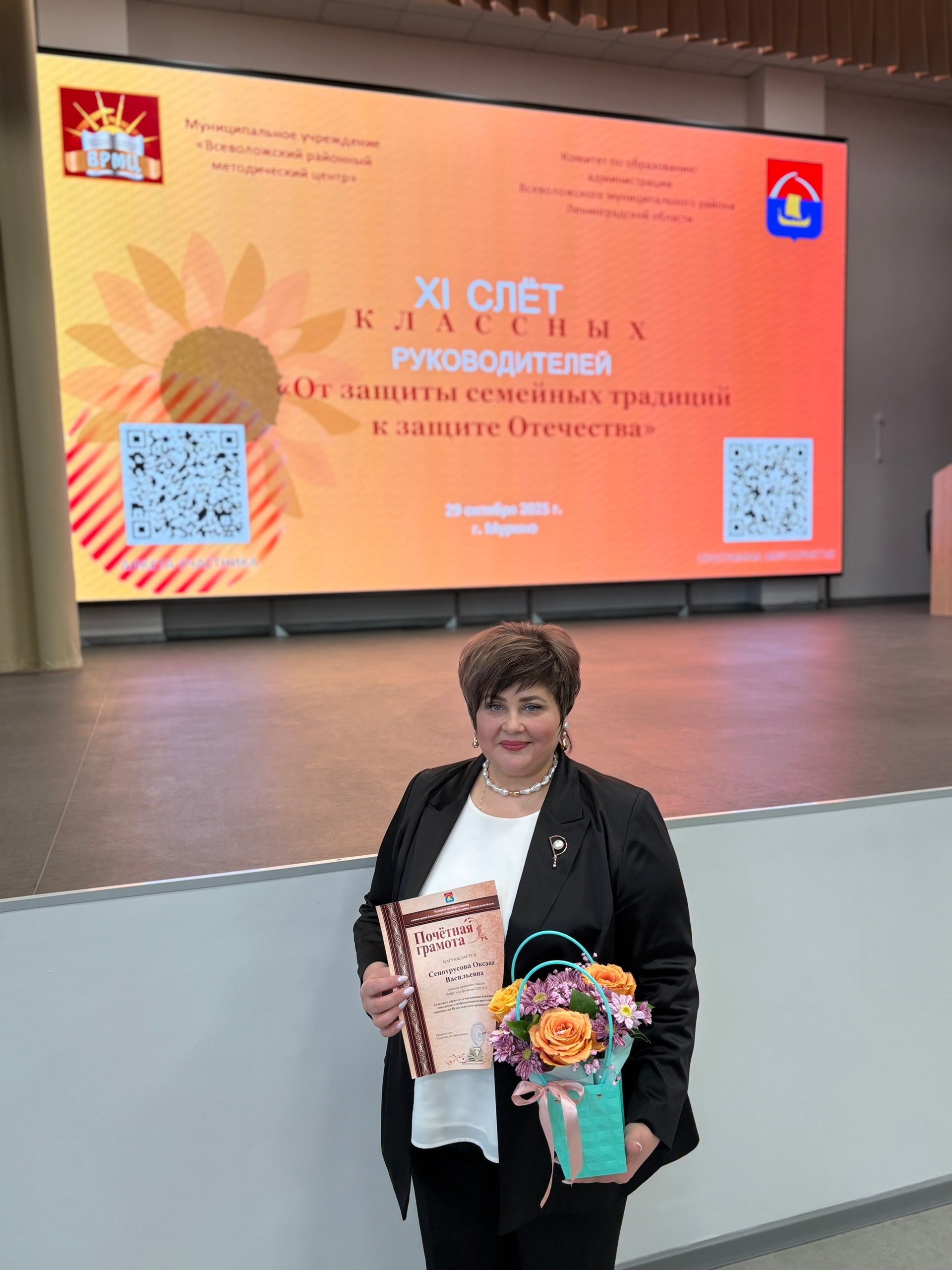 Особенным моментом слёта стало торжественное награждение. Почётной грамотой за высокий профессионализм и значительный вклад в воспитание подрастающего поколения была награждена учитель нашей школы — Сенотрусова Оксана Васильевна!