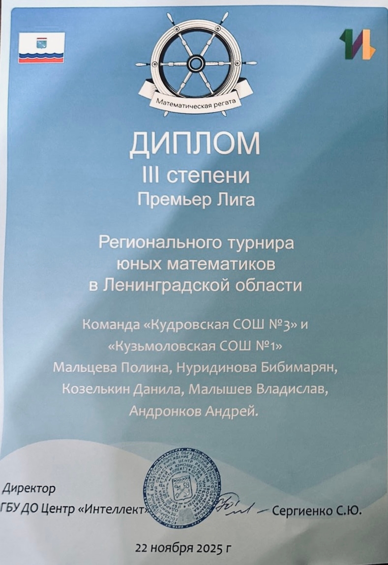 22 ноября, в составе команды с учащимися Кузьмоловской школы №1, Полина и Бибимарям проявили высокий уровень знаний и командного взаимодействия. По итогам соревнования наши ученицы были удостоены дипломов 3 степени, что является отличным результатом и подтверждением их упорного труда и мастерства.